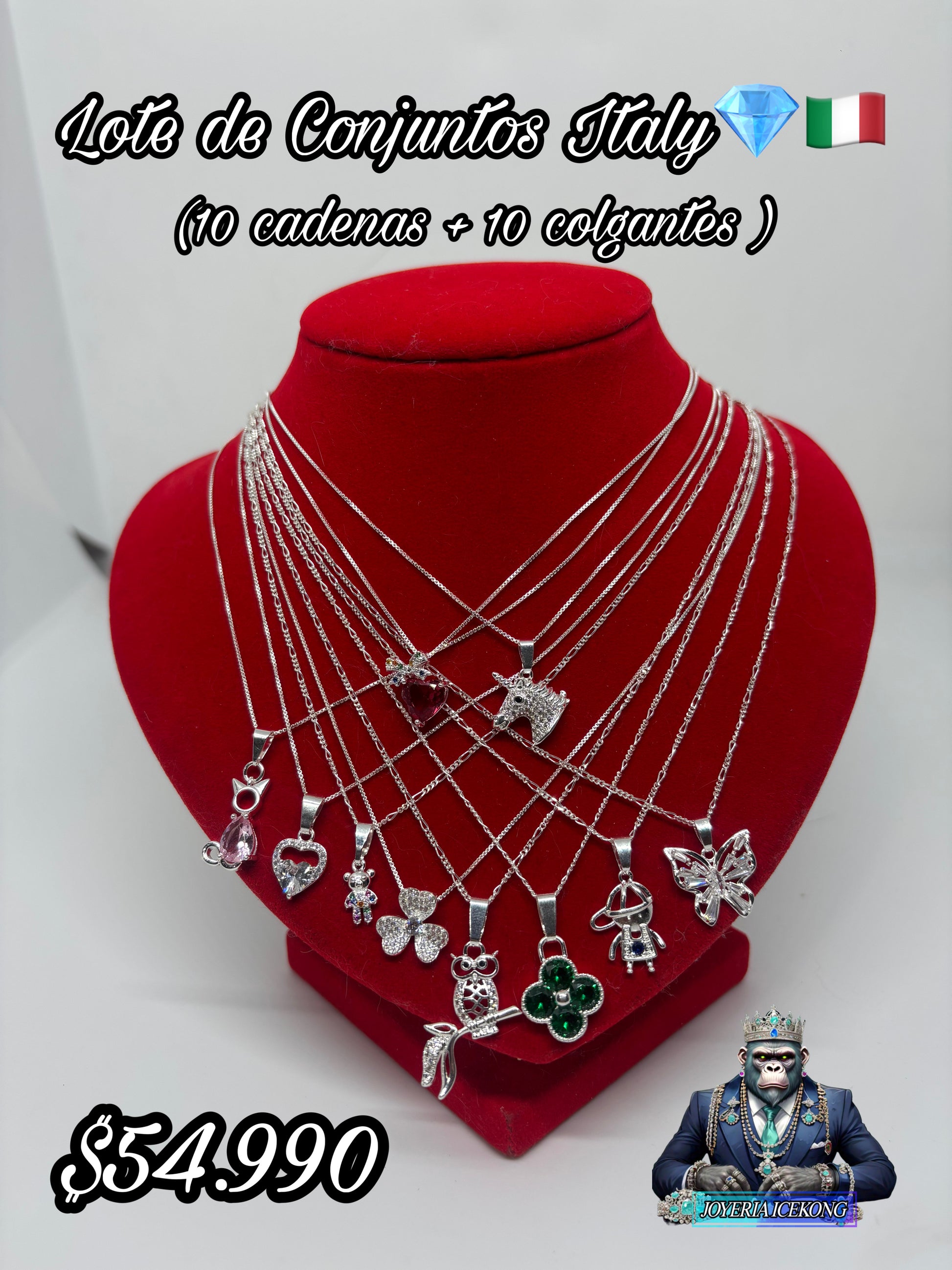 10 cadenas + 10 colgantes plata italiana