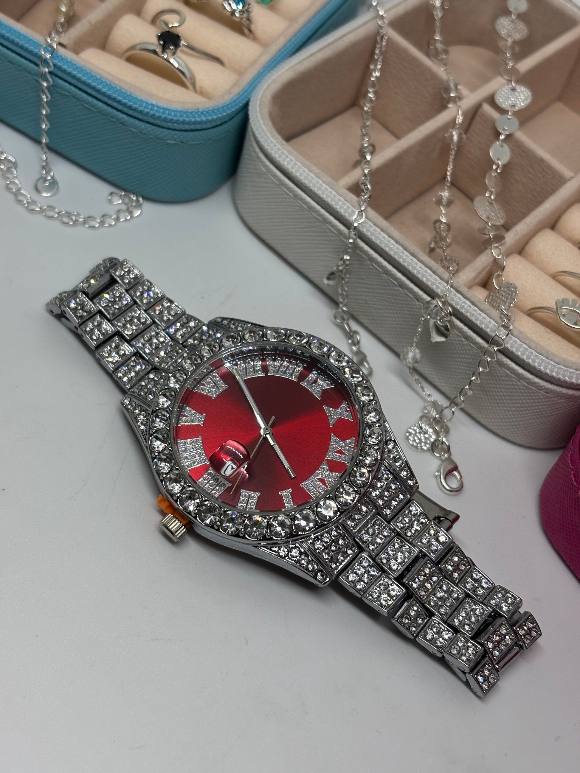🔹9 cadenas + 8 colgantes + 9 pulseras + 9 pares de aros + 9 anillos + 3 joyeros + reloj Diamond de 🎁